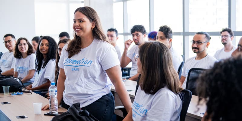“Quando eu comento que fiz esse curso e que foi grátis, ninguém acredita. Esse curso acho que foi a melhor coisa que aconteceu na minha vida, ele mudou a minha carreira. Eu vivia pela rua até tarde, trabalhava 14 horas seguidas, e agora vou ter minha primeira carteira assinada. Sem vocês, eu não estaria onde estou agora. Eu já pensei em desistir várias vezes durante o curso, mas a Generation sempre me apoiou. Eu não estaria trabalhando na Ambev se não fosse pelo curso e por vocês.”